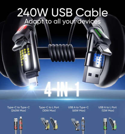 This compact 4-in-1 design is perfect for travel—just one cable for all your tech essentials.
