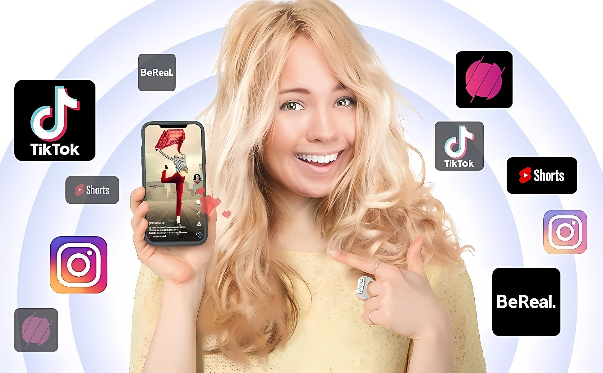 - Function: Selfie, Like, page up, down, left and right, increase and decrease volume