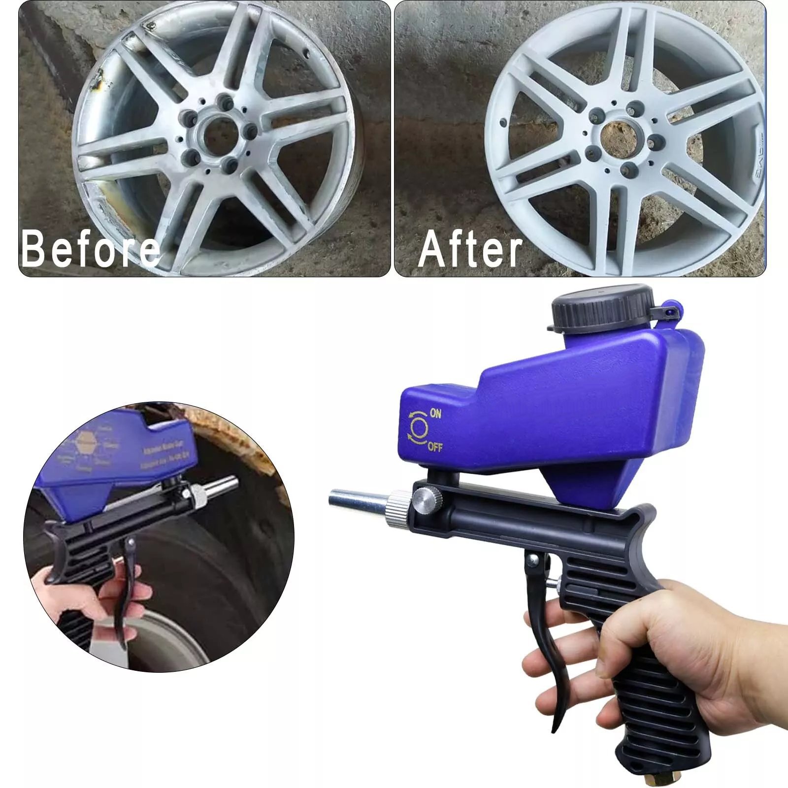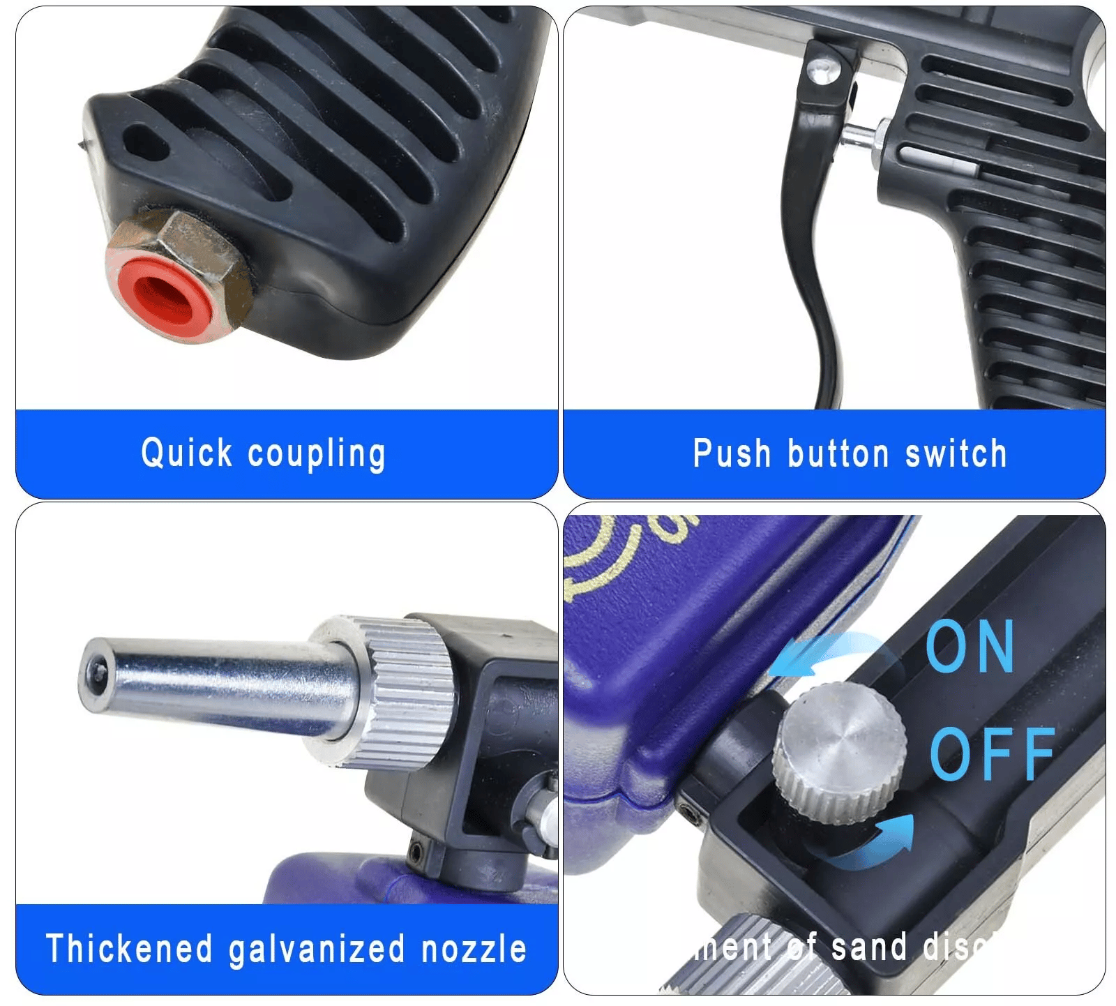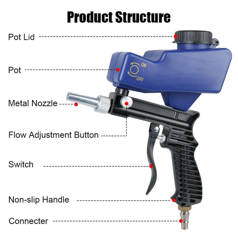 Adjustable Design:the flow adjustment switch can be manually adjusted the flow rate of sandblasting to precisely control the amount of sandblasting to meet the requirements of different scenarios. It also saves you the waste of media.