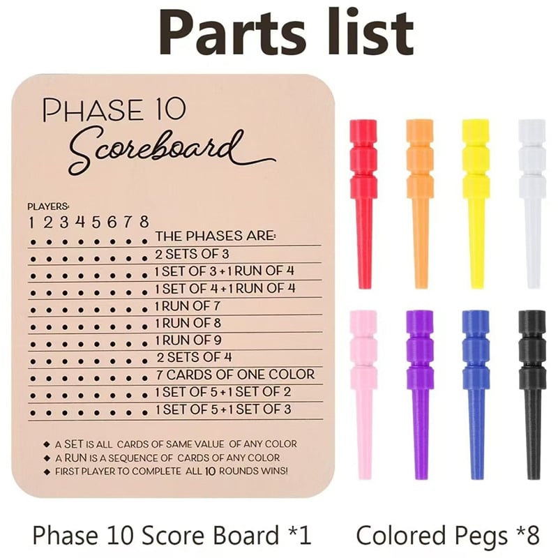 【Phase Ten Scorecard and Round Tracker 】 Easily keep score for phase 10 with our scorecard and round tracker. Transform every family game night into a smoothly run game night, enjoyable experience for all ages