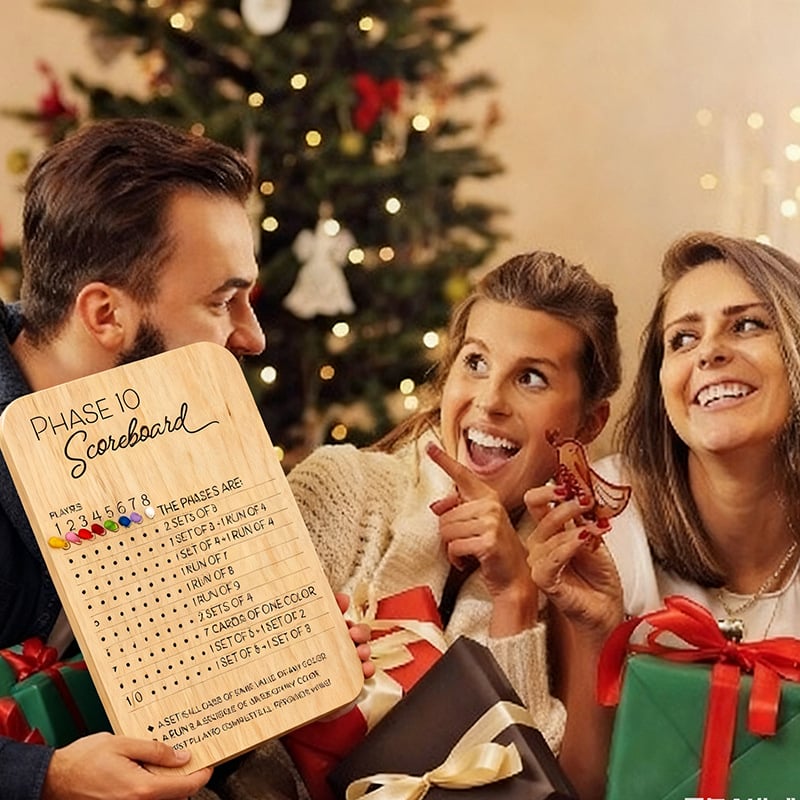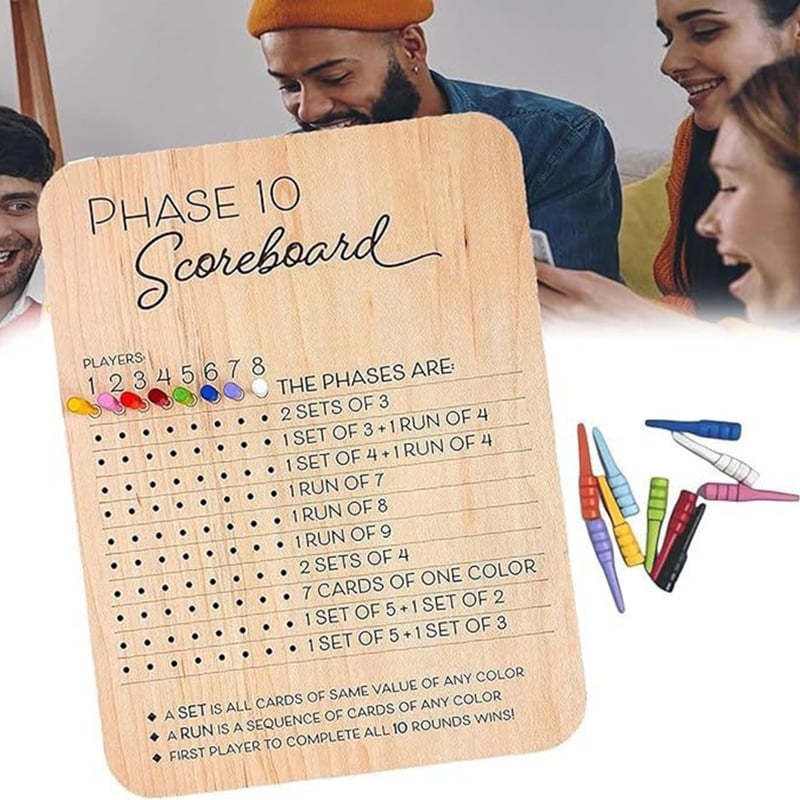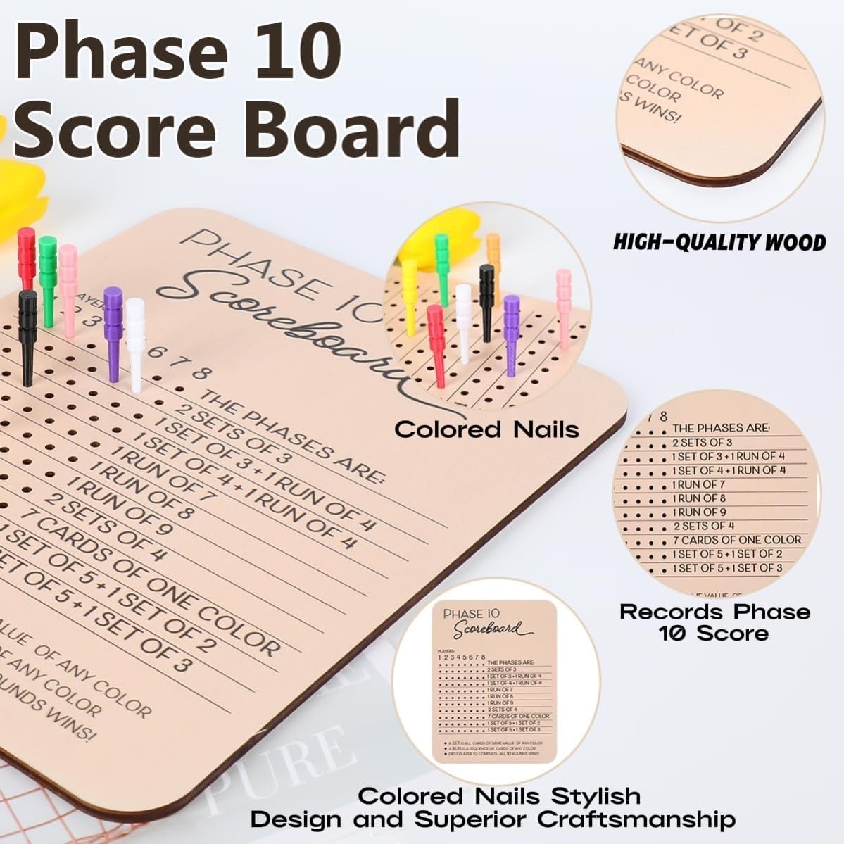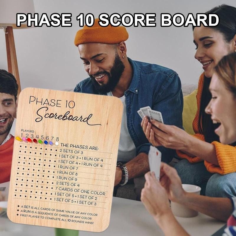 【 Wooden Phase 10 Score Board 】 Are you a fan of the phase ten? Tired of dealing with low-quality paper score sheets? take your phase 10 game experience to the next level with our exquisite scorecard made by engraving 3 pieces of wood and combining them into one layered card with sturdy construction to ensure durability and reliability